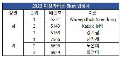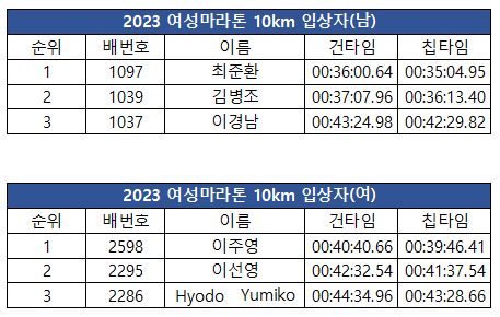 제23회 여성마라톤 입상자 안내