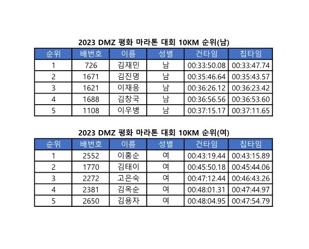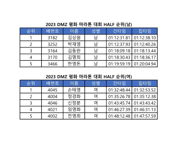 DMZ 평화 마라톤 대회 공식 기록 조회