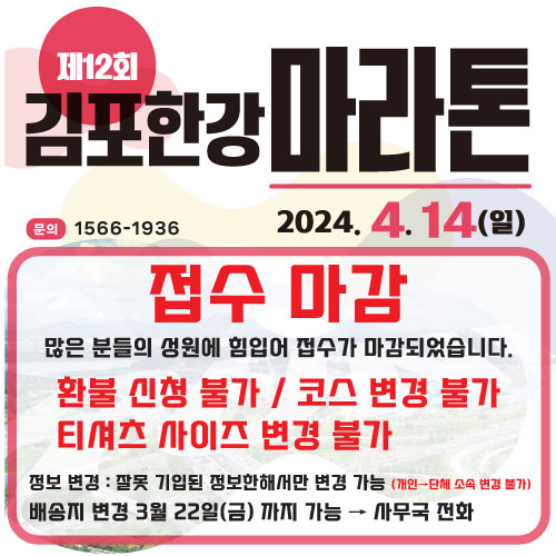 [접수 마감] 제12회 김포한강마라톤대회 접수 마감 안내