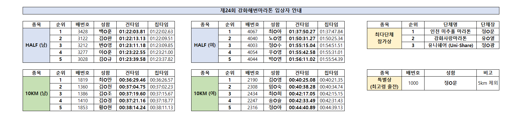 [입상자] 제24회 강화해변마라톤 입상자 안내