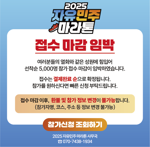 2025 자유민주마라톤 사무국 ☎ 070-9438-1934