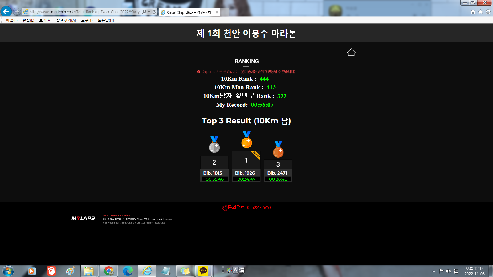 완주 후 배번확인 결과 어처구없는 황당한 일 발생하여 수정 부탁드립니다.