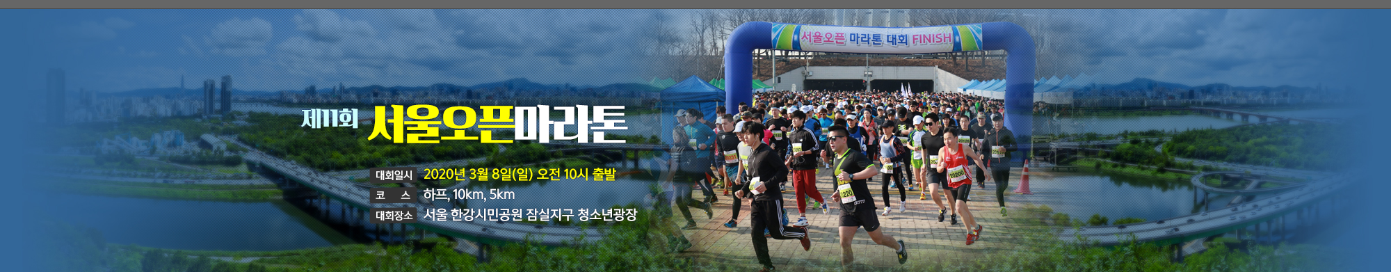 2020년 제11회 서울오픈마라톤대회를 3월8일 일요일 오전 10시에 한강공원 잠실청소년광장에서 개최하오니 많은 관심과 참여바랍니다