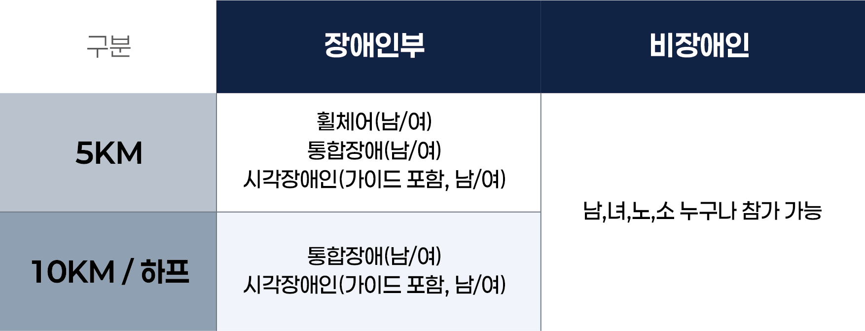 휠체어 및 시각(전맹)장애인은 별도 참가신청